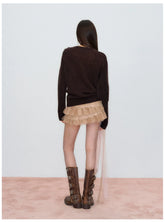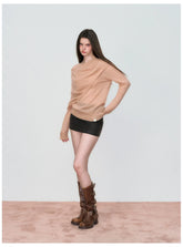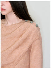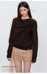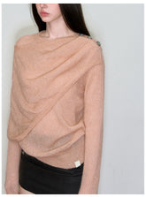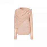 This knit sweater features a distinctive irregular shawl-style collar that drapes naturally for a relaxed yet design-driven silhouette. Crafted with a loose fit, it delivers effortless layering appeal while maintaining a refined, modern aesthetic. The asymmetrical neckline adds visual interest and versatility, making it an easy match with trousers, skirts, or denim for everyday spring styling with a soft, elevated feel.