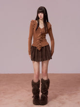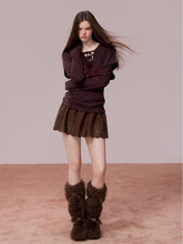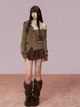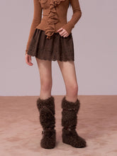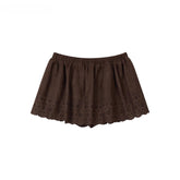 A refined A-line mini skirt crafted in a suede-touch fabric, featuring intricate cut-out embroidery and structured volume for a sculpted silhouette. The design combines autumn–winter texture with a versatile, feminine shape that pairs effortlessly with knits, coats or fitted tops. The skirt maintains a clean waistline and subtle flare, creating a flattering and modern proportion.