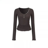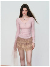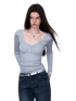 This refined knit top features a flattering V-neckline and a tailored waist-cinching design that enhances the natural silhouette. Crafted with a clean, minimalist structure, it delivers a sleek and feminine fit while remaining comfortable for everyday wear. The streamlined cut makes it a versatile spring essential, ideal for pairing with high-waisted trousers, skirts, or layered under jackets for a polished, modern look.