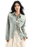 A spring-ready denim jacket crafted with a refined washed finish for a naturally worn-in, vintage look. Designed in a relaxed silhouette, this lightweight piece offers easy layering and everyday versatility. Subtle stretch ensures comfort and freedom of movement, while classic denim detailing keeps the style timeless and effortlessly chic. A go-to outerwear essential for casual, mix-and-match outfits.