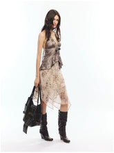 This skirt blends vintage charm with a fluid, modern silhouette. Designed with an asymmetric slanted cut, the irregular hemline creates soft movement and an effortlessly elegant drape. The delicate leopard print features a light brown base with deeper tonal spots, offering a refined take on classic animal patterns. Crafted from lightweight, semi-sheer fabric, it delivers a soft, airy feel while remaining breathable and skin-friendly. A subtle knotted detail at the waist gently cinches the silhouette without restriction, enhancing natural curves and ensuring a comfortable fit across different body types. Perfect for pairing with both minimal and statement tops for versatile styling.
