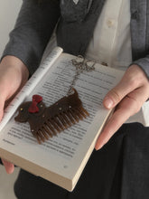 A charming vintage-style accessory featuring a dachshund-shaped comb adorned with sparkling rhinestones and an elegant bow. This delicate piece combines playful design with refined craftsmanship, perfect as a bag charm, keychain, or collectible gift. Its exquisite detailing and glossy finish make it a stylish accent for any fashion lover’s collection.