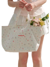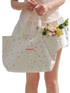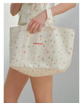 This vintage-inspired canvas tote bag features a charming hand-drawn floral print that captures a relaxed holiday aesthetic with a soft, feminine touch. The delicate scattered floral pattern creates a light and romantic visual effect, bringing a gentle spring-summer mood to everyday styling. Crafted with a clean and minimal silhouette, the bag blends practicality with sweet vintage charm, making it perfect for casual outings, travel, or daily errands.