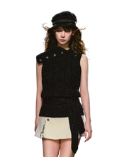 The classic turn-down collar is highlighted with a small metal button detail inspired by traditional “little fragrance” tailoring, adding a polished finishing touch. The vest is designed with a slightly cinched waist silhouette and an adjustable waist belt, allowing the shape to subtly contour the body while maintaining a relaxed and effortless look.