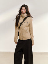 Vintage Suede Stand-Collar Fitted Jacket