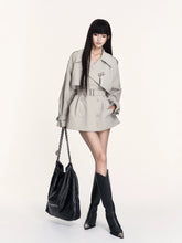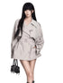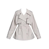 This fall/winter trench coat delivers a refined British-inspired silhouette with a modern, fashion-forward edge. Designed with a structured lapel collar and a cinched waist, it creates a clean, slimming shape while maintaining timeless elegance. The cropped length adds a contemporary touch, making it easy to pair with high-waist bottoms for a balanced, polished look. Ideal for daily wear, commuting, or elevated casual styling, this coat blends classic tailoring with modern minimalism.