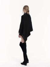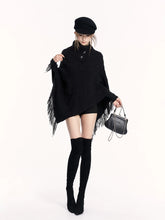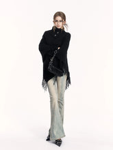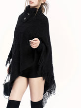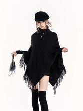 This fall/winter statement knit outerwear blends a vintage-inspired “retro siren” attitude with modern dark aesthetics. Designed with an irregular cape-style silhouette, it drapes effortlessly over the shoulders to create fluid movement and a relaxed yet striking look. The high turtleneck adds warmth and structure, while the loose fit allows for easy layering and styling versatility. Perfect for cool-weather outfits, this piece delivers bold personality with cozy sophistication.