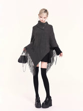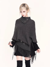This statement knit top delivers a nostalgic “vintage heiress” mood infused with Japanese atmospheric styling. Designed with a high turtleneck and an irregular cape-like silhouette, it drapes fluidly over the body to create soft movement and a relaxed yet elegant profile. The loose fit allows for effortless layering, while the asymmetric cut adds visual interest and modern character. Ideal for New Year occasions, fall/winter styling, or refined casual looks, this piece balances warmth, comfort, and distinctive design.