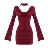 Cowl-Neck Choker Slim-Fit Bodycon Dress