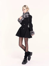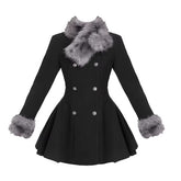Fur-Collar Waist-Cinching Wool Coat Dress
