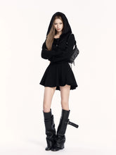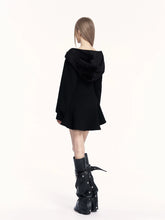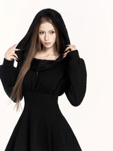 This fall/winter sweatshirt dress delivers a bold dark-romantic statement with a fashion-forward silhouette. Designed with an off-shoulder neckline and integrated hood, it highlights the collarbone while adding a striking edge. The fitted waist creates a slimming, sculpted shape, balanced by a softly structured skirt length for effortless wearability. Finished with a fleece-lined interior, it offers warmth and comfort without compromising style—perfect for statement street looks or edgy seasonal layering.