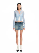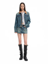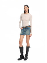Washed Denim Twill Leather Patchwork Mini Skirt