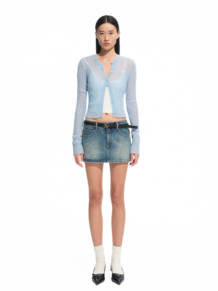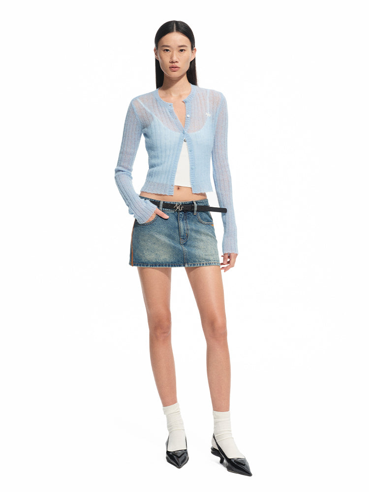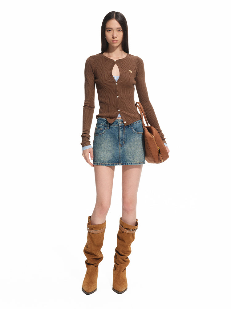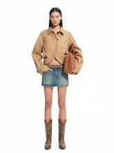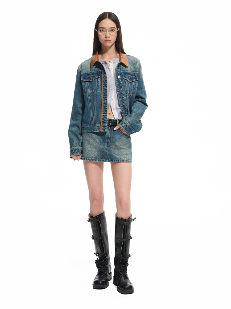 Washed Denim Twill Leather Patchwork Mini Skirt - CHINASQUAD