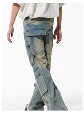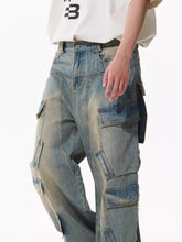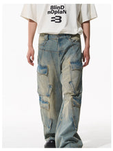 A contemporary reinterpretation of utilitarian denim — these straight-leg cargo pants feature washed detailing and irregular pocket paneling that create a deconstructed streetwear aesthetic. The mid-rise design and relaxed fit offer both comfort and style, while the subtle fading and workwear-inspired structure give the piece a rugged yet refined character. Perfect for everyday wear with a modern edge.