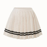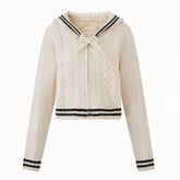 Elegant yet effortlessly cozy, the “White Philosophy” set blends classic preppy style with soft modern luxury. The cable-knit cardigan, crafted from a cloud-like wool blend, offers a structured yet relaxed silhouette, pairing seamlessly with the crisp pleated skirt for a harmonious balance of warmth and refinement. The set’s delicate texture and timeless white hue create a versatile look — perfect for transitioning from campus chic to urban sophistication.