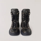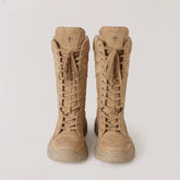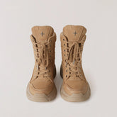 SMFK presents the Wild Terrain boots — a fusion of rugged outdoor durability and refined craftsmanship. Hand-polished to achieve a natural worn-in texture, each pair is crafted from premium matte cowhide leather, offering a soft yet structured touch. The retro mountaineering-inspired silhouette is complemented by tonal stitching and a robust rubber outsole, delivering both grip and comfort. Available in classic Desert Sand and Wild Black, as well as mid and high-calf versions, these boots embody SMFK’s raw, utilitarian elegance with a distinct contemporary edge.