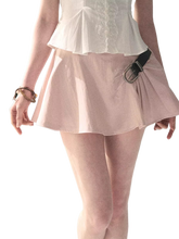 The side of the skirt features a fixed belt buckle detail that serves as the visual focal point of the design. A black waist strap paired with a metallic D-shaped buckle introduces a subtle contrast against the skirt body, balancing sweetness with a touch of edgy style. The belt is fixed into the side seam to ensure the shape remains structured and stable without shifting during wear.