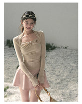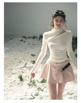The overall silhouette adopts a high-waist A-line umbrella shape. The flared skirt hem visually slims the waist and elongates the legs, creating a taller and more balanced proportion. The design is especially flattering for pear-shaped figures while maintaining a youthful and lively style.