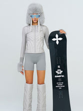 This high-performance down jacket offers superior warmth with 85% white duck down filler. The jacket features a sleek design that includes elastic stitching for a better fit and enhanced mobility. Its lightweight yet durable structure is perfect for outdoor winter activities.