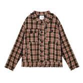 A relaxed-fit overshirt featuring a checkered wool-blend pattern with contrast fringe trim and a classic lapel collar. Designed with a soft texture and structured silhouette, this piece blends casual charm with a sophisticated edge. Perfect for layering in transitional weather, it delivers both comfort and effortless style.