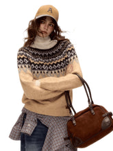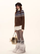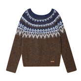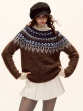 This Fair Isle wool-blend pullover captures timeless winter charm with a touch of refined coziness. Featuring an intricate jacquard pattern and a relaxed round-neck silhouette, it offers both warmth and softness in a comfortably loose fit. The premium blended yarn gives it a fluffy, smooth texture, perfect for effortlessly chic layering. Style it with denim, wool skirts, or tailored trousers for a sophisticated yet laid-back seasonal look.