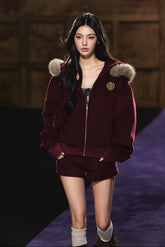A modern winter hoodie jacket featuring a soft wool-blend shell and plush fleece lining for enhanced warmth and comfort. The oversized silhouette, front zip closure, and faux fur-trimmed hood create a chic and cozy winter-ready look. Designed for both casual outings and layering, this jacket combines softness, structure, and a touch of luxurious texture.