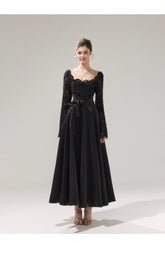 Inspired by classic Roman Holiday elegance, this French-style evening dress features a refined satin finish combined with delicate lace detailing. Designed with a defined waist and a flowing full skirt, it creates a graceful hourglass silhouette reminiscent of timeless Hepburn glamour. The structured bodice enhances the figure, while the sweeping hem adds movement and sophistication. Ideal for formal occasions, dinners, or elegant events, this dress delivers a polished, high-end aesthetic with romantic appeal.