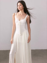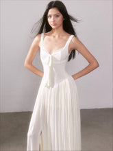 A French-inspired lace knit maxi dress featuring a romantic camisole neckline and elegant side slit. Designed with a soft and breathable texture, it gracefully accentuates the body’s silhouette while maintaining an effortless, feminine flow. Perfect for brunches, garden parties, or evening walks, this piece combines timeless elegance with modern minimalism.