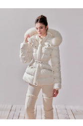 A luxurious winter essential that merges warmth with elegance. This cropped down jacket features a voluminous fox fur hood and a cinched waist design, creating a flattering silhouette while ensuring cozy insulation. Crafted with high-quality down filling, it offers lightweight warmth and soft comfort, making it the perfect piece for winter city strolls and chic cold-weather layering.